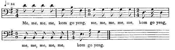 Well, him singing de whole night till him swallow her. When de mamma get tea, papa get up an' drink, say, "Where dese young people? past time!" Mamma say, "Dem is young people, let 'em lie down!" An' when de fader shove de door gwine see, de Snake swallowed de daughter.