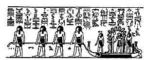 The Boat of Ra being towed through the Seventh Division of the Tuat by the gods thereof.