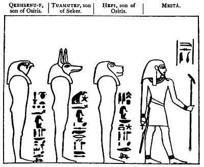 The four grandsons of Horus the Aged. They were the gods of the four cardinal points, and later, as the sons of Osiris, protected the viscera of the dead.
