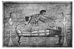 THE SOUL VISITING THE MUMMY. See page 24. (From the Ani Papyrus)