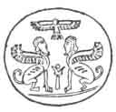 Ahura Mazda is pictured as a winged disc without any head, in the style of Chaldean sun-pictures, in a cameo representing him as worshipped by two sphinxes, between whom the sacred haoma plant is seen (see p. 59). In another cameo (see p. 59) he appears as a human