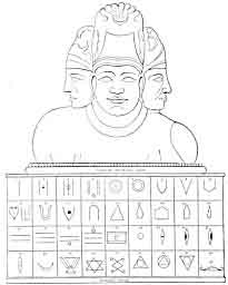 THE BRAHMAN TRIMURTI. Underneath the marks of the sects of Vishnu (1-12), Siva (13-30), Rama (36), Durga (31-32), and the Trimurti (33-35). (After Coleman.)