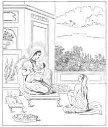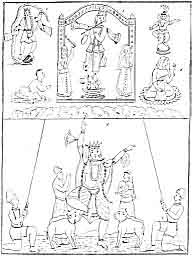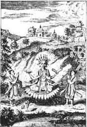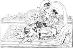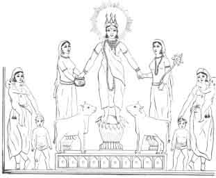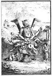 After an old and richly-colored Hindu painting. (Reproduced from Moore's Hindu Pantheon, plate, 59.)