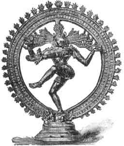 SHIVA DANCING SURROUNDED BY A HALO OF FLAMES. (Bronze Statue. Musée Guimet.)