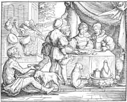 DIVES, ENJOYING LIFE, AND LAZARUS SUFFERING. (From a German Picture-Bible.)
