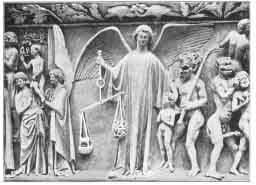 Reminding one of similar notions prevalent in ancient Egypt. (About 1150. From the cathedral in Auntun, France.)