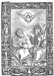 Representing God as Emperor, Christ as King, and the Holy Ghost as the principle of light, of order and good government. (Reproduced from Muther.)