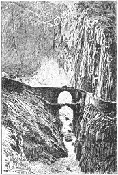 One of the oldest triumphs of human skill in bridge-building gave rise to the Märchen of the Devil's Bridge which boldly overspans the yawning gorge of the Reuss where the mountain road passes up to the furca of the St. Gotthard. A new bridge has been built by engineers of the nineteenth century right above the old one; but the old one remained for a long time in its place, until it broke down in recent years. The legend goes that a shepherd-lad engaged the Devil to build the bridge on the condition that the soul of the first living creature that crossed it should be forfeited. When the work was finished the lad drove a chamois over the bridge, which, seeing that he was cheated out of the price he had expected, the Devil wrathfully tore into pieces. 1