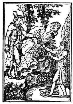 The simplified process did not, however, in the opinion of sorcery, seem the last word which it was possible to say upon the subject. Despite the threatened vengeance of the heir of Oromasis, the mystery was adapted by the later editors of the Red Dragon and reappears as the Grand Cabala, without which no other can succeed. In this, its last transformation, it becomes a recipe for evoking the devil which seems to breathe the true spirit of Goëtic genius. Its success, as I must premise, will depend upon a recollected and devotional spirit in the operator, together with a clean conscience; otherwise, in place of commanding the evil spirit, the latter will command him. This understood, the process itself is simple. You have merely to secure a black hen which has never been crossed by the male bird and to do this in such a manner that it shall not cackle; it is best therefore to seize it in its sleep, clutching it by the neck, but not more than is necessary to prevent it from crying. You must repair to the highroad, walk till you come to a cross-way and there, on the stroke of midnight, describe a circle with a cypress rod, place yourself in the midst thereof and tear the bird in twain, pronouncing three times the words, Euphas, Metahîm, frugativi et appellavi. Next turn to the East, kneel down, recite a prayer and conclude it with the Grand Appellation, when the Unclean Spirit will appear to you in a scarlet surcoat, a yellow vest and breeches of pale green. His head will resemble that of a dog, but his ears will be those of an ass, with two horns above them; he will have the legs and hoofs of a calf. He will ask for your orders, which you will give as you