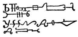 [paragraph continues] The Book of Black Magic, following the Key of Solomon, and representing the Jewish rite, prescribes an outer vestment like that of the Levites, with the following characters embroidered in red silk upon the breast:--