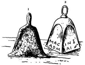 A piece of lead ore is supposed to possess peculiar virtue as an amulet against malocchio, or to bring luck. Of these I have seen three, two of which I possess, with the invocation which must be pronounced when one is tied up in the usual red woollen bag. Far more potent, however, are the old Roman sling-stones, or pointed slugs of lead, of which such numbers are everywhere found, and of which I have two, which I bought for a half-franc each, as talismans for the evil eye. But more effective still is a lump of crude antimony. This is supposed