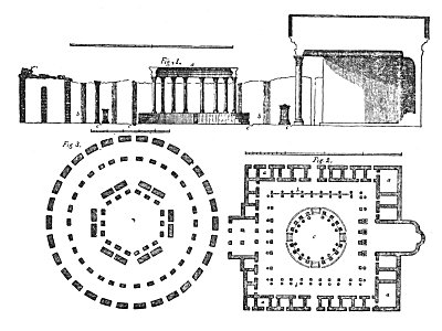 circles of stones, in the centre of which was kindled the sacren fire, 1 the symbol of the god. Homer frequently speaks of places of worship consisting of an area and altar only (τεμενοε Βωμος τε), which were probably inclosures like these of the Persians, with an altar in the centre. The temples dedicated to the creator Bacchus, which the Greek architects called hypaethral, seem to have been anciently of the same kind; whence probably came the title περικιονιον (surrounded with columns) attributed to that god in the Orphic litanies. 2 The remains of one of these are still extant at Puzzuoli near Naples, which the inhabitants call the Temple of Serapis: but the ornaments of grapes, vases, &c. found among the ruins, prove it to have been of Bacchus. Serapis was indeed the same deity worshipped under another form, being equally a personification of the sun. 3 The architecture is of the Roman times; but the ground plan is probably that of a very ancient one, which this was made to replace; for it exactly resembles that of a Celtic temple in Zeeland, published in Stukeley's itinerary. 4 The ranges of square buildings which inclose it are not properly parts of the
