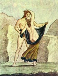 In 1871, an English translation of Famin's work was published in England under the byline of 'Colonel Fanin'. Privately printed in a limited edition, this translation became one of the rarest erotic books. A photographic reprint of this was published in 1969 in paperback by 'Collectors Publications' (City of Industry, CA), under the title The Secret Erotic Paintings. Collectors Publications was a fly-by-night pulp publisher whose line consisted mostly of stroke books, 'marriage' manuals, pirate editions of Grove Press books, and a few reprints of rare erotic books. The 1969 paperback edition, with atrocious color separations, was the source of this etext and the accompanying images. Originally priced at $15 (an astronomical price for a poorly printed 150 page paperback at the time--a more typical price was 50 cents), used copies of this run up to $50 on the Internet.