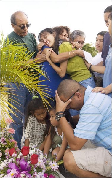 Below: The slain officer's wife and family grieving at the scene where he was killed. And yet beer continues to flow like a river through irresponsible cultures!
