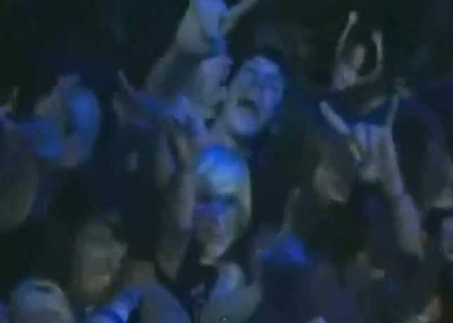 ABOVE PHOTO: Duped religious fans flashing the “I LOVE SATAN” hand-sign as Brian Welch sings “WASHED BY BLOOD” at a so-called Christian Rock Music concert. Satan is laughing... fools!!!