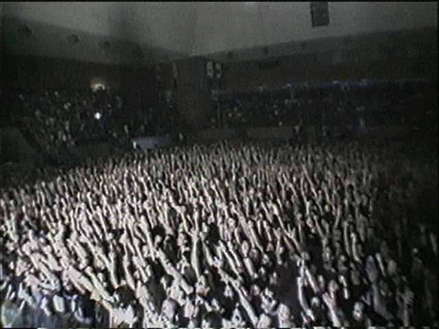 Photo of kids at Manson's concert accepting Satan at his alter call and giving the sign of the Devil.