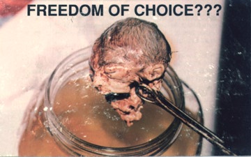 Is this what the abortion crowd calls “Freedom of Choice?” A choice for whom? It surely wasn't a choice for the child in the photo above (and it is a child). Freedom for who? Shouldn't a child have the freedom to be born? Who do people think they are to play God by deciding whether someone should live or die? It is wicked!!!
