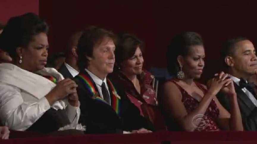 BELOW: Some of the world's wealthiest people, all willing servants of the Devil's New World Order. This photo was captured using my "Print Screen" button from a Paul McCartney Tribute concert. James Taylor is singing during this particular photo. They all look so miserable and arrogant...