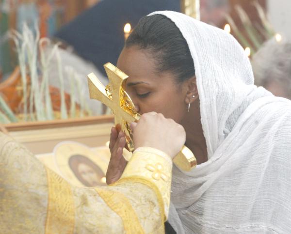 Kissing a Russian Orthodox priest's hand!