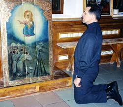 Idolatrous Orthodox Catholics Worshipping an Image of Mary