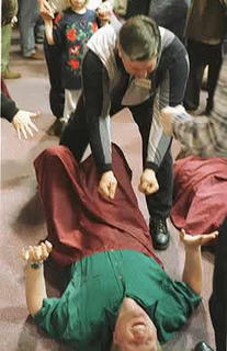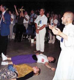ABOVE: The Charismatic practices of Holy Laughter and Being Slain in the spirit are demonic. No such foolishness is taught in the Word of God. Rather, we read in 1st Corinthians 14:40... Let all things be done decently and in order. There is nothing "decent" about falling on the floor during a church service and laughing uncontrollably like an idiot.